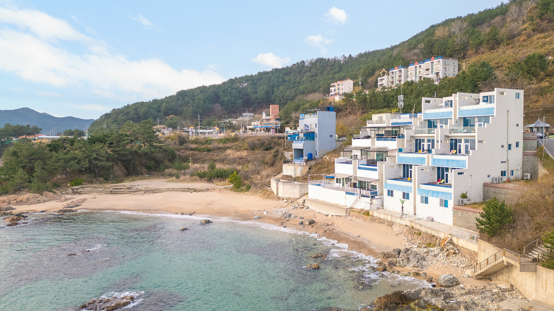 펜션 앞 아름다운 해변이 위치해 있습니다. 소중한 사람과 함께 여유로운 산책을 즐겨보세요.